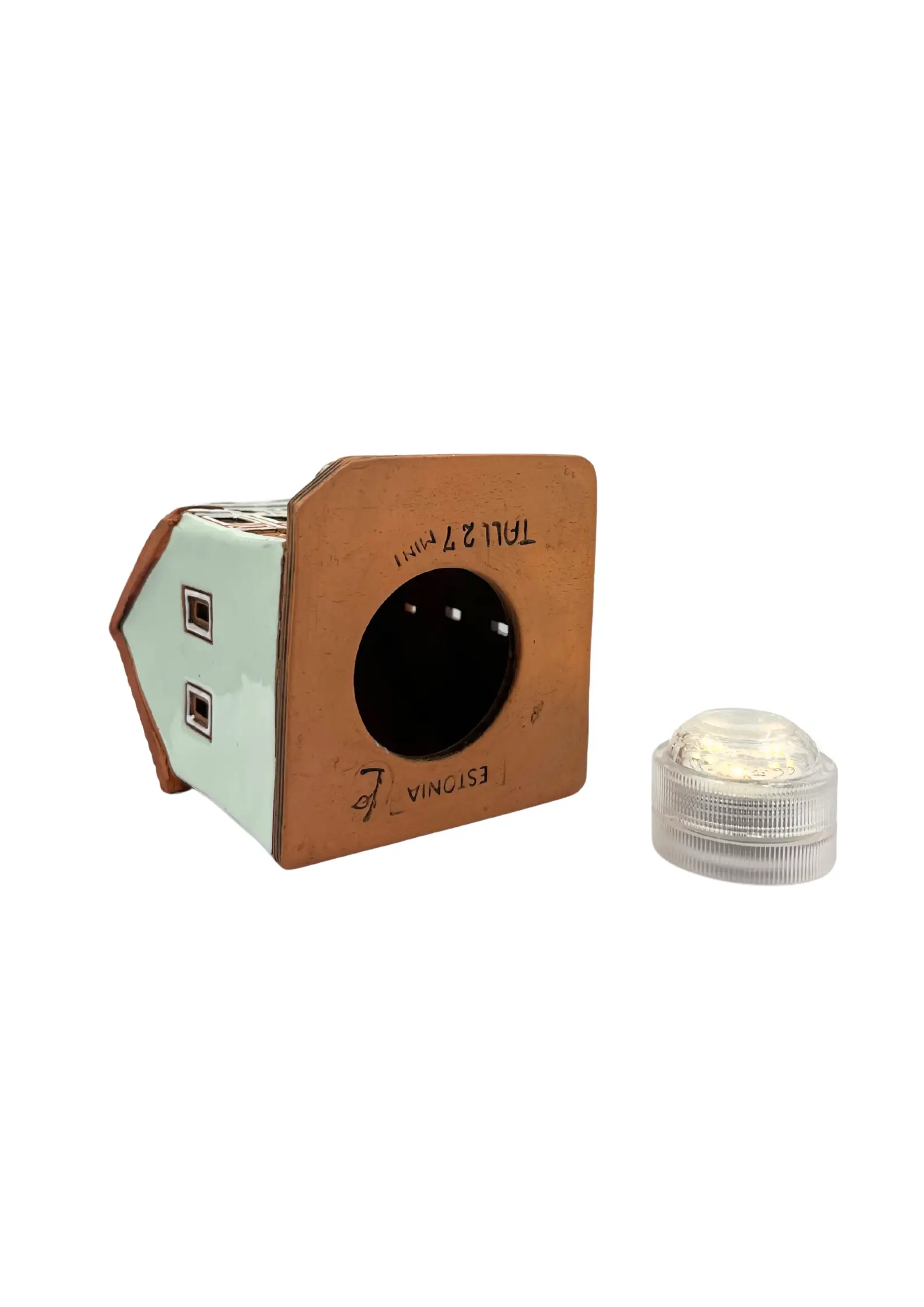 „Tule Haus Tallinn Keramikhäuschen – dieses handgefertigte Miniaturhaus zeigt ein historisches Gebäude am Rathausplatz in Tallinn, in dem heute das Lokal „Tule Estonia“ untergebracht ist.